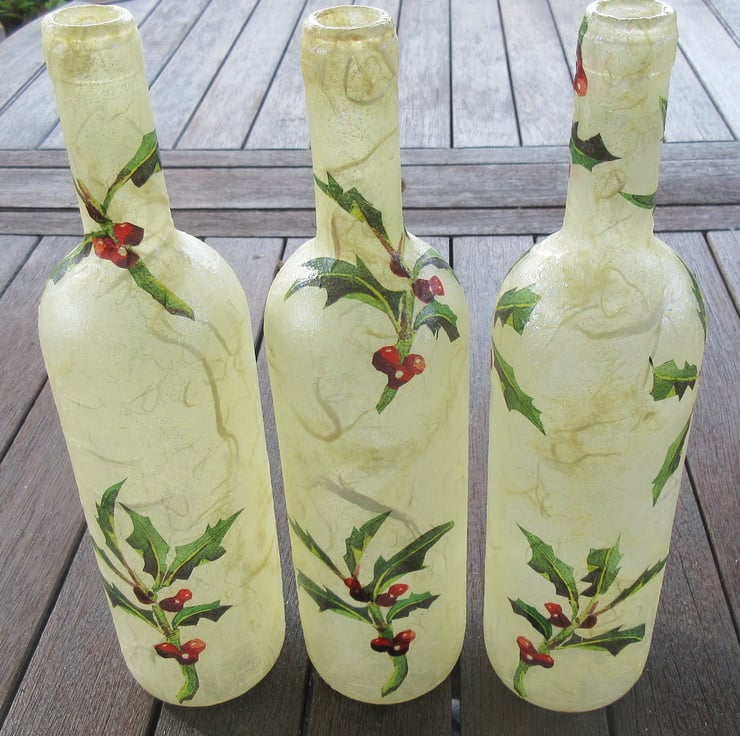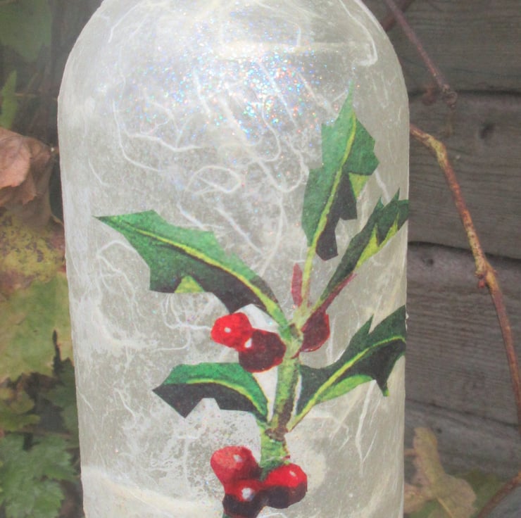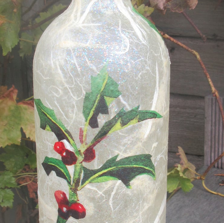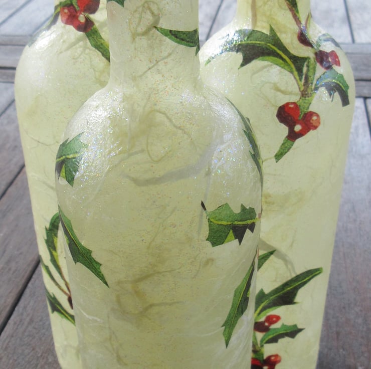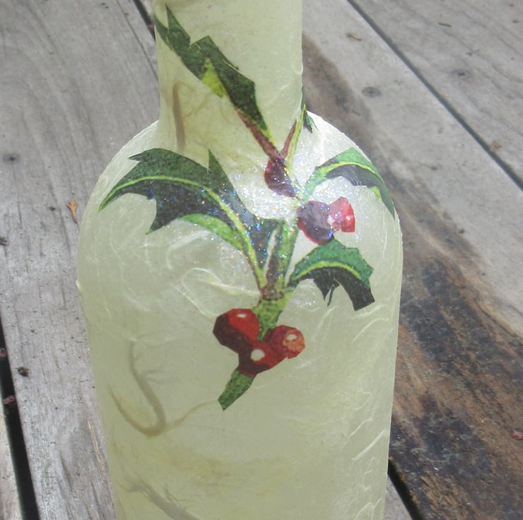 The tissue papers been very carefully and lovingly decoupaged onto the bottle