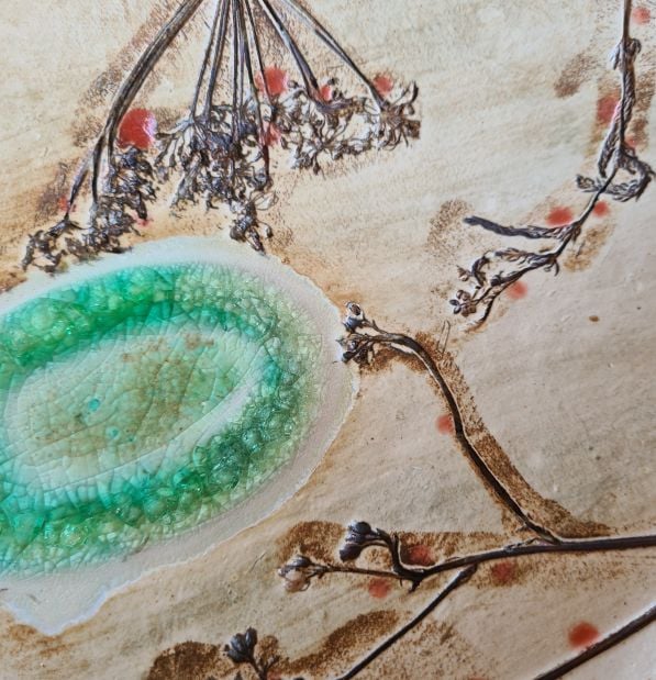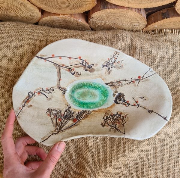 Handmade ceramic dish from the Red Berries collection, perfect for autumn and winter. Real flowers hand picked from British hedgerows are impressed into the clay when soft, before constructing into forms.