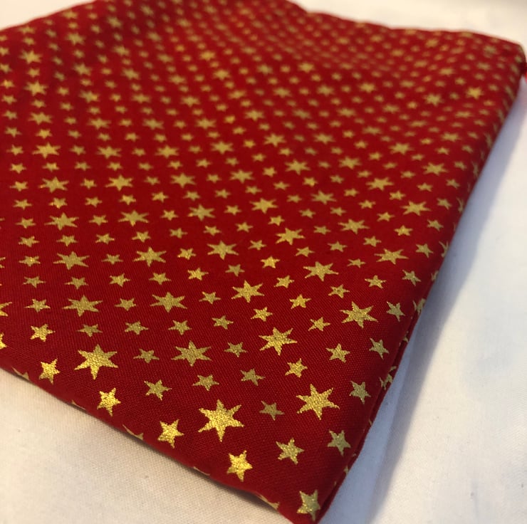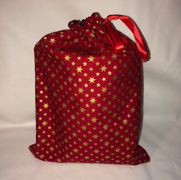 It has beautiful gold stars on a red backing, a black lining and a red ribbon tie.
