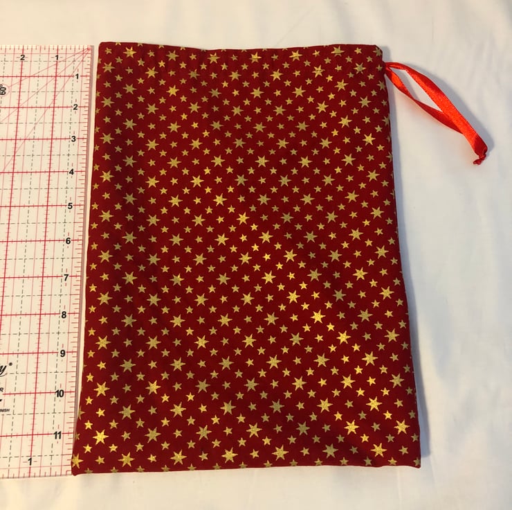 This gift bag measures 12 inches high by 8.5 inches wide.