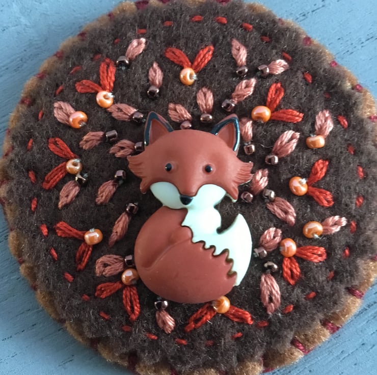 I loved creating and hand embroidering an Autumn scene around this Fox button in my Sewing Room in Sheffield.