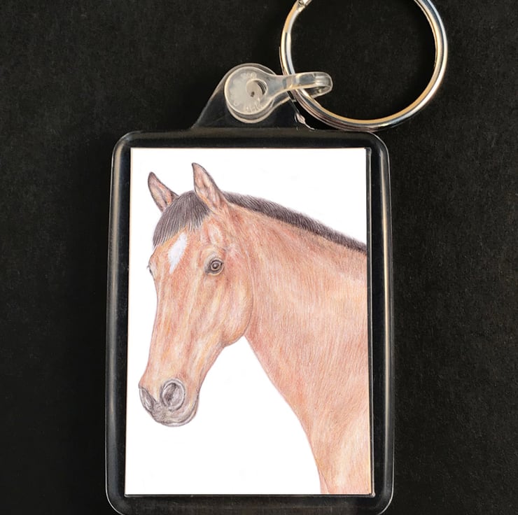 Bracken the Horse. Print of hand drawn illustration by artist Paul Fry presented in an acrylic Keyring.