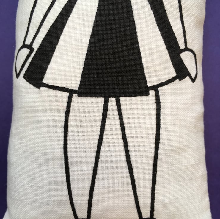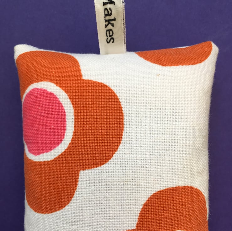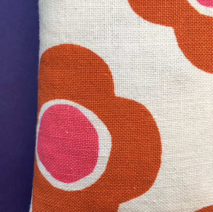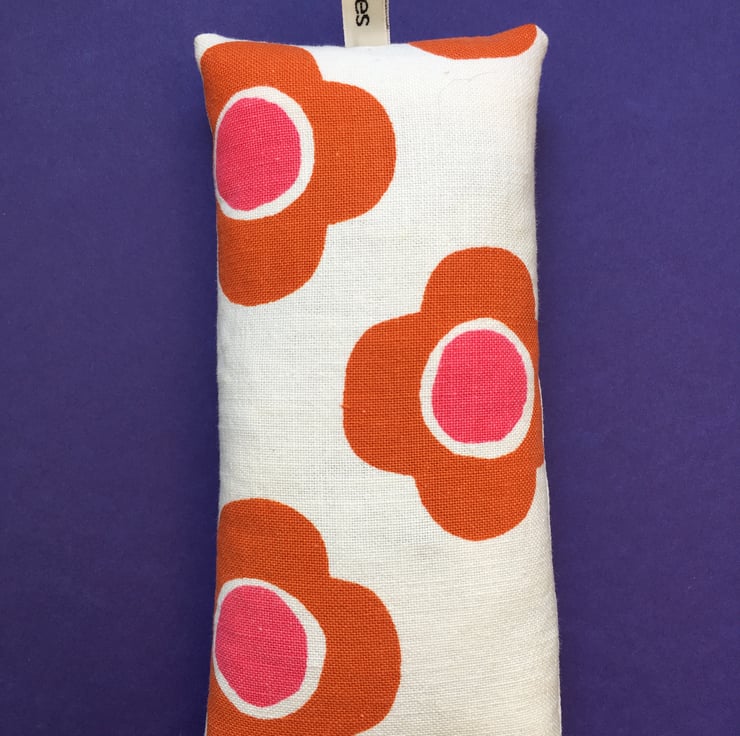 To make this lavender bag I have used a screen print of Berta, one of my vintage Polish dolls and original vintage 1960’s pink and orange daisy fabric made by Habitat.