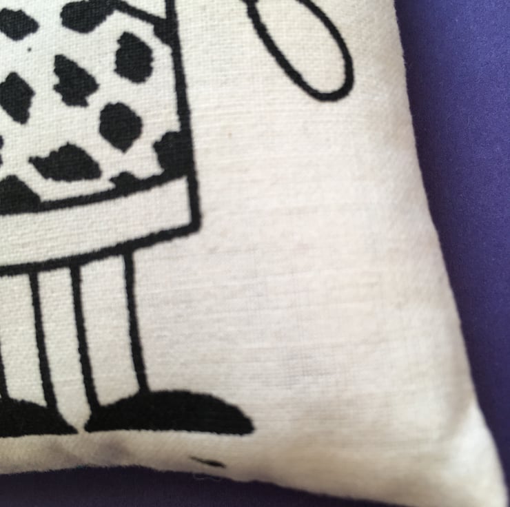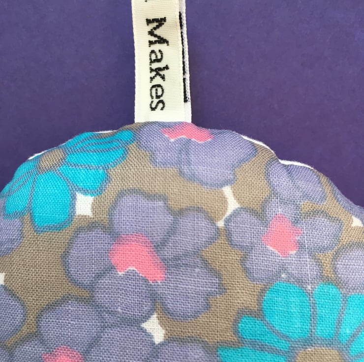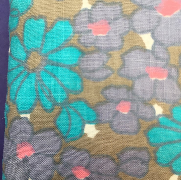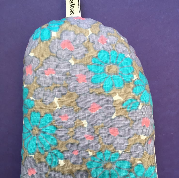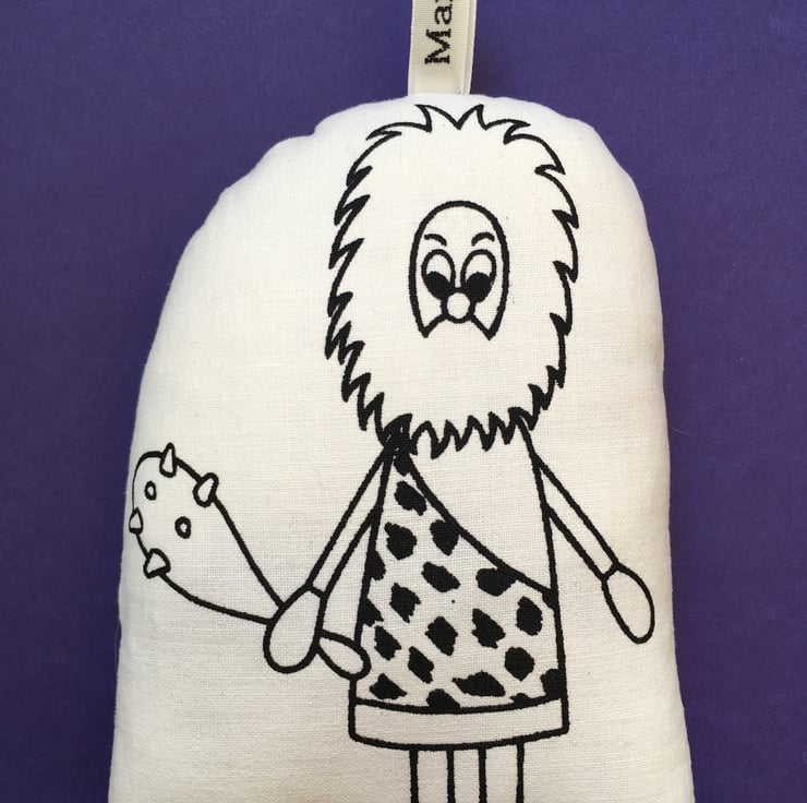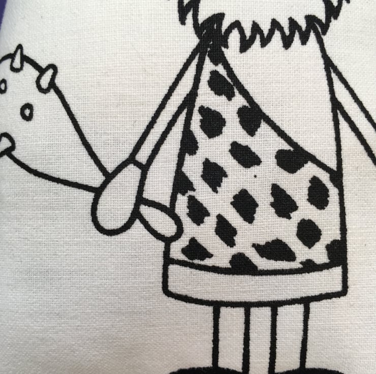 To make this lavender bag I have used a screen print of Stan, my little 1960’s wooden Caveman and original vintage 1960’s blue and lavender floral fabric..