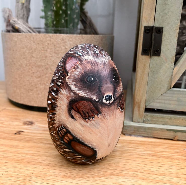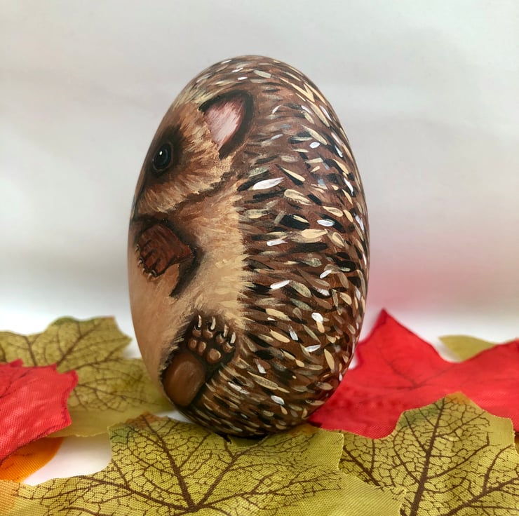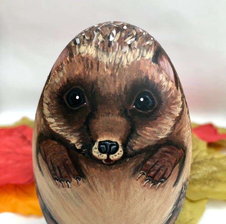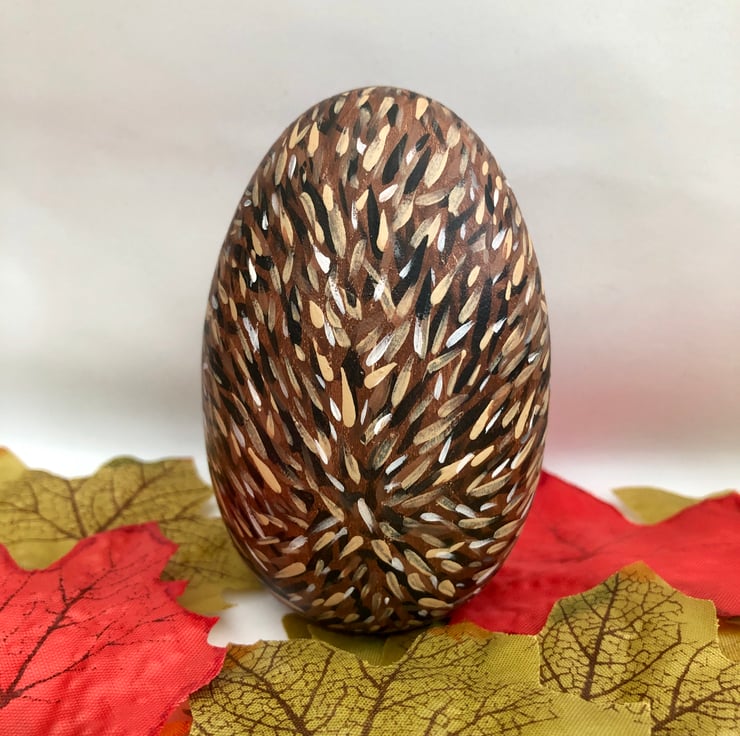 This is a super cute hedgehog that I have hand painted on to a solid hard wood egg.