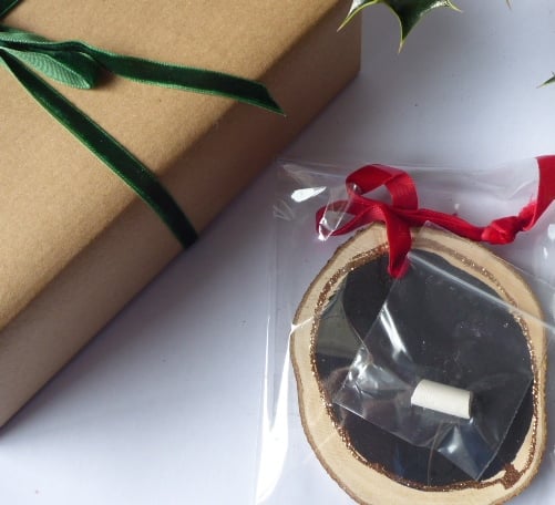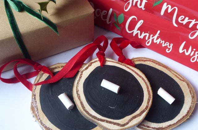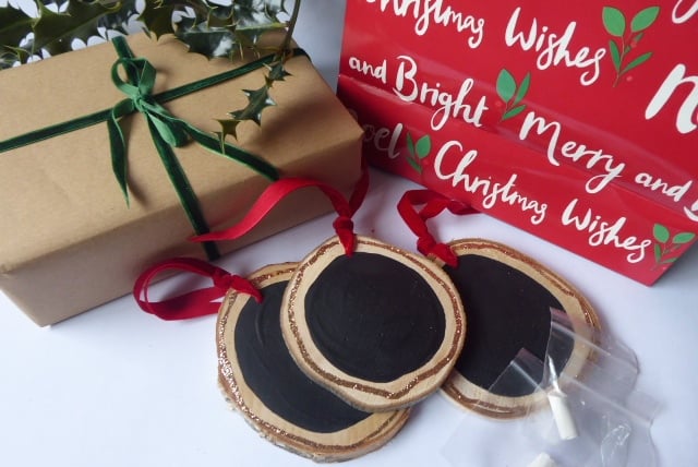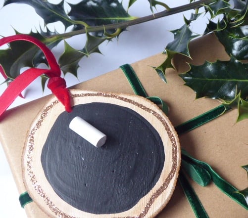With recycling in mind I hit upon the idea of a re-usable blackboard style decoration , the big size is ideal for children to write their own messages and use a gift tag. Or keep them busy by writing the date to count down the days to Christmas!