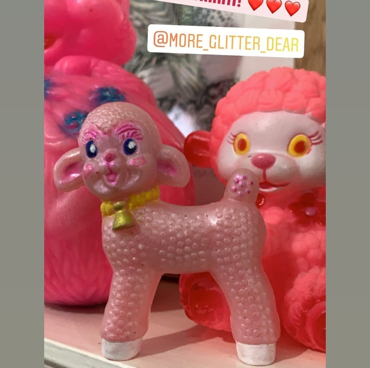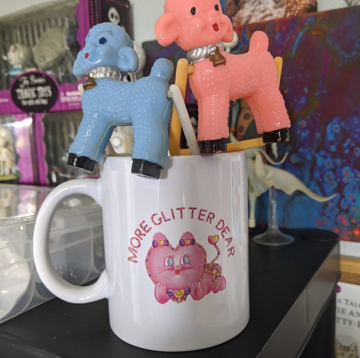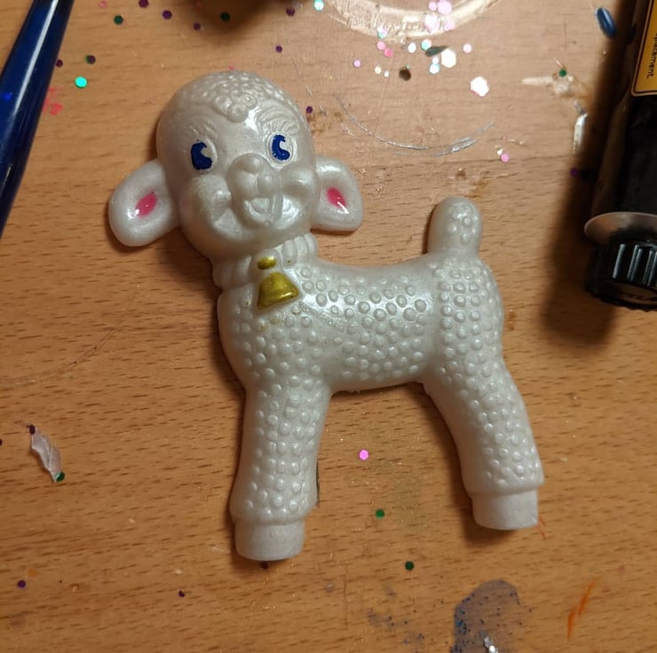 Being a collector of Vintage toys and Kitsch cute ephemera, I look at cute faces every day, so this was no hard task! Once their little features are painted on, I glaze with an iridescent coating on the face and hooves .