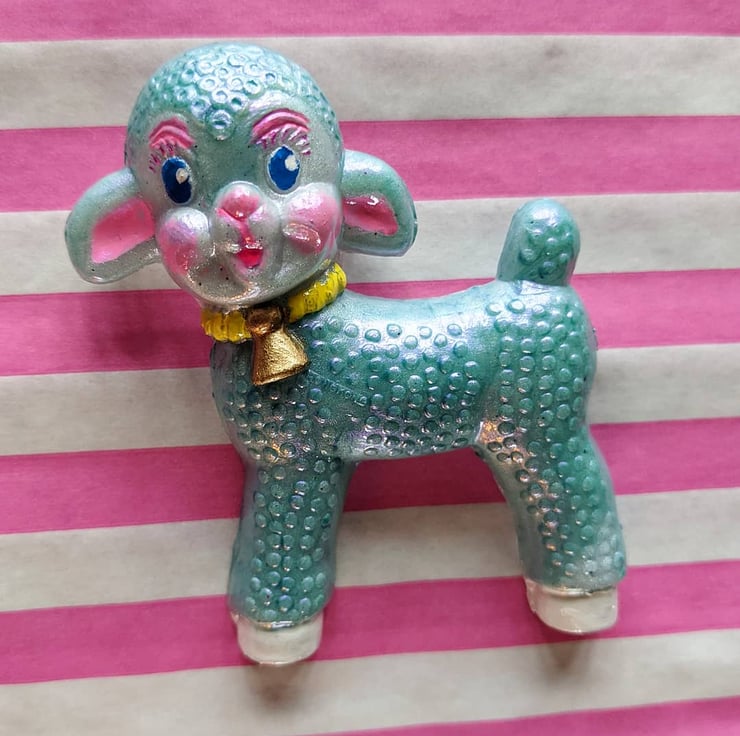At 22g, this lamb may be weightier than the average brooch, so would suit a coat, or the makeup sponge on the reverse of your clothing is my best trick!