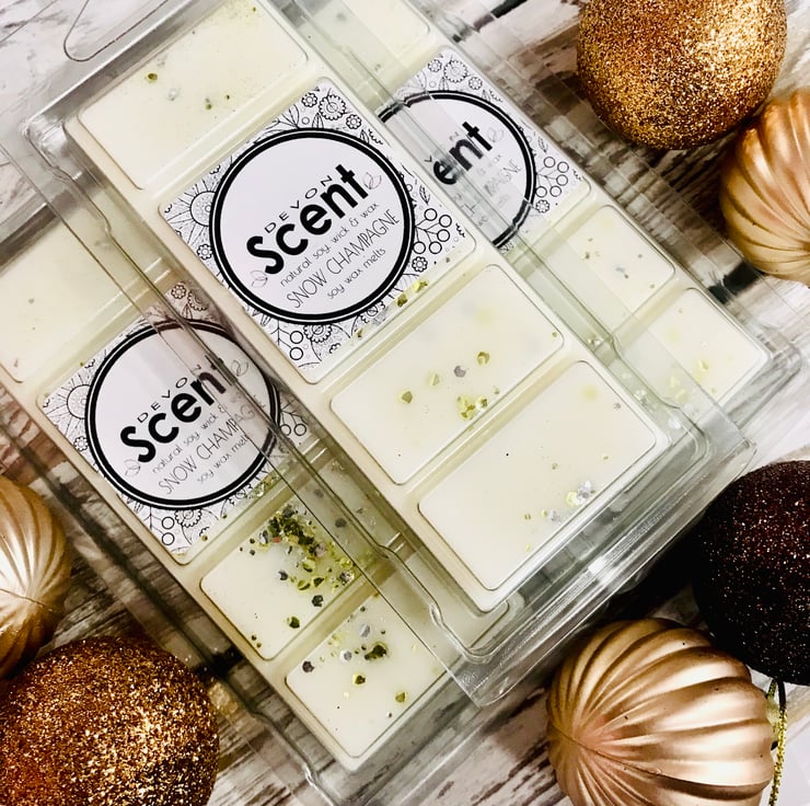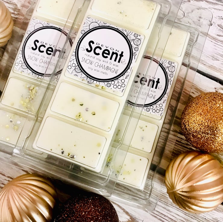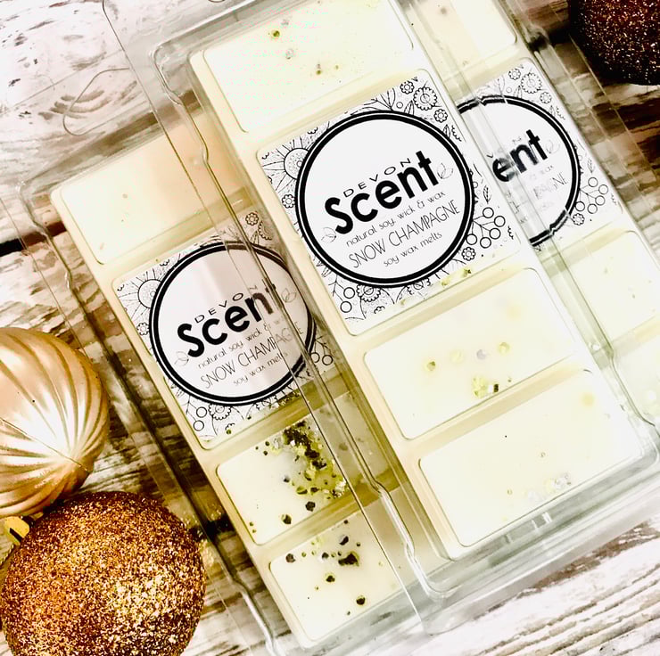 Our highly fragranced long lasting Snow Champagne Snap Bar Wax Melts have a clean and refreshing sparkling citrus scent with notes of snow, greenery and musk.