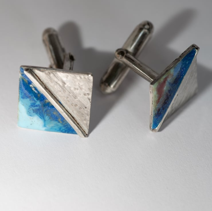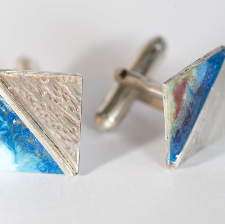 These handcrafted silver cufflinks with stunning blue as the ocean, and the red as the sunset on the beach, will be a perfect Valentine's day gift.
