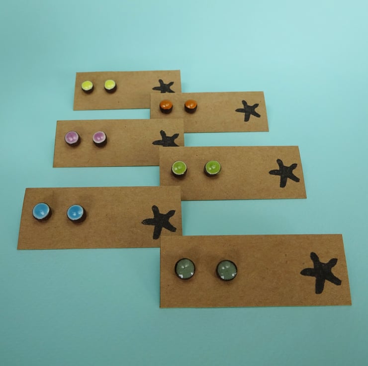 I have designed these ear studs to be small and to have a pop of bright colour, they can be worn as a pair or (like me) individually. I also wanted to use a terracotta clay, something you don't often see in jewellery.
