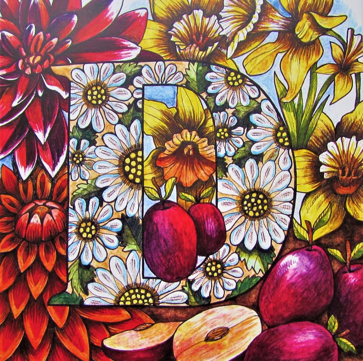D is for dahlia, damson, daisy and daffodil.