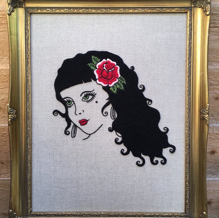 My fascination with tattoos has led me to create my own drawings using the style which I then turn into embroideries to adorn your wall.