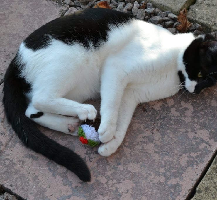 Watch your cat rub this toy over it's face with delight.They are filled with strong catnip and toy stuffing. My cat goes mad for this catnip.