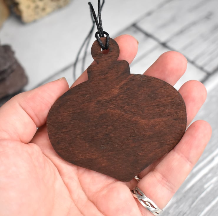 All of my creations are my own design and composition. Each piece is unique, no two will be identical. Please note, wood is a natural material and each piece has it's own knots and imperfections that make it beautiful. I seal the wood with varnish to help protect it. To care for your Christmas decoration, hang on your tree/wall/hearth. Avoid damp and direct sunlight. Store away with care when not in use.
