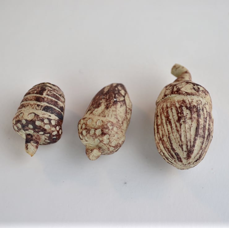 Each set has three acorns and sizes vary but the largest is at least 3 cm long.