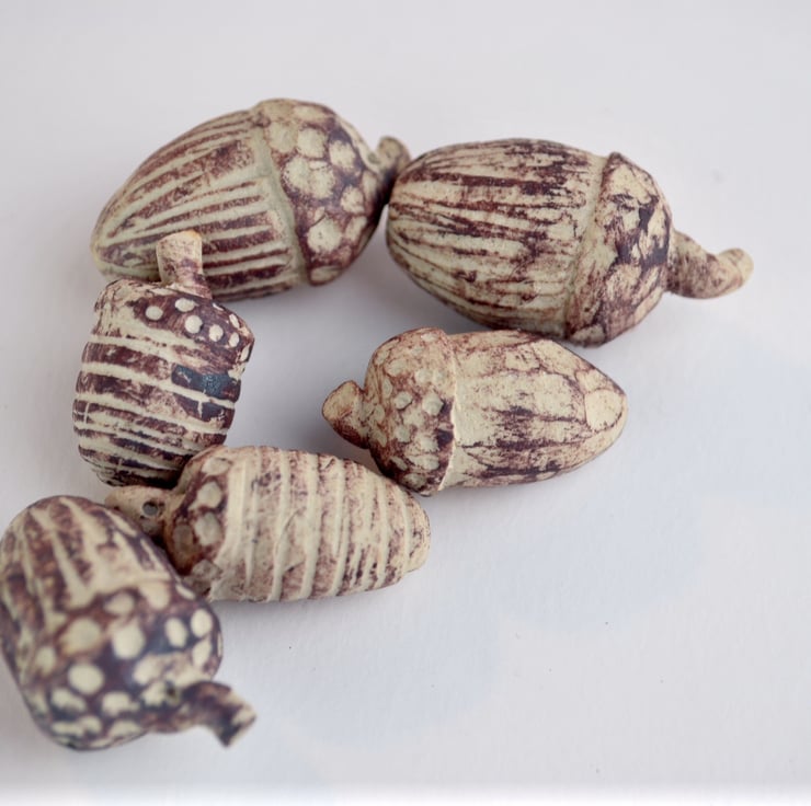 Tiny little acorns, decorated in a rustic style, handmade in small numbers, each one is different while retaining its particular acorn qualities.
