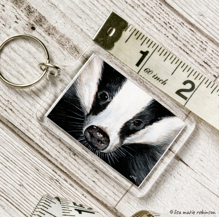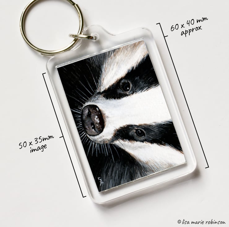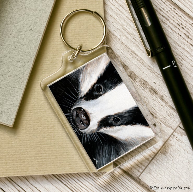 Perfect little gift idea for a wildlife lover. This keyring features a painting of a badger by Lisa Marie Robinson