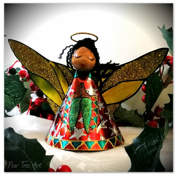 Large Christmas Tree Angel made from Coffee Tins. Handmade and hand painted.