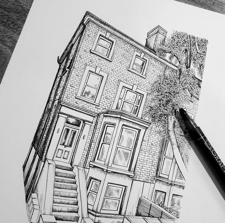 I love drawing and when a customer at a market asked me if I could draw her house that she had lived in for over 30 years, before she sold it and moved out of London, I was delighted to. This is turn has led to me being asked to draw several other houses and special buildings as a keepsake.