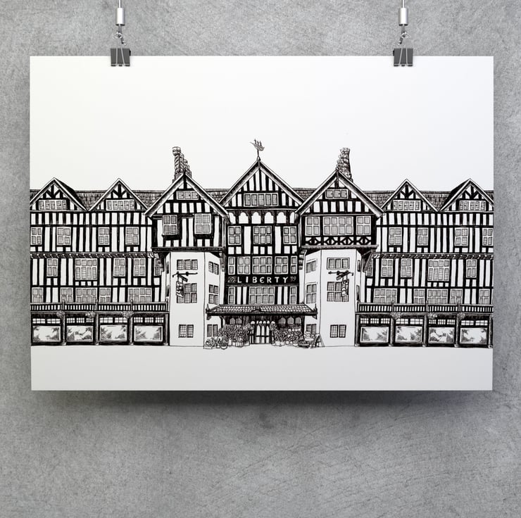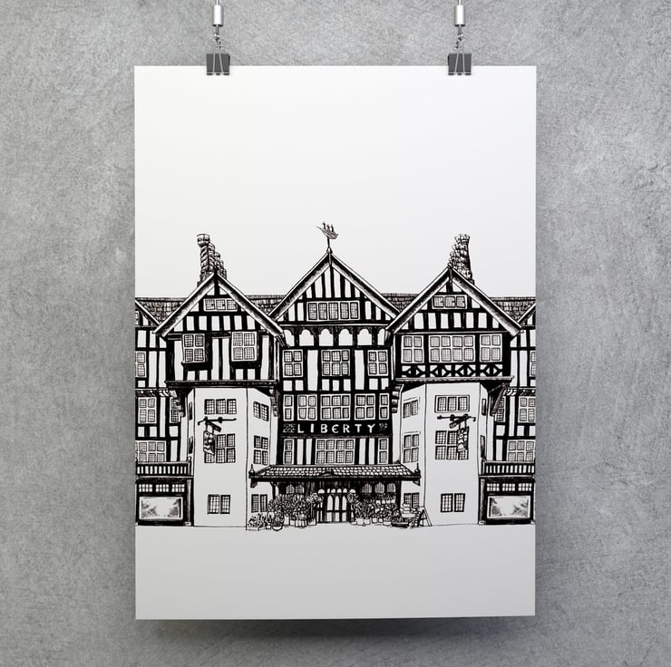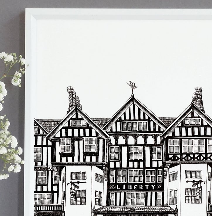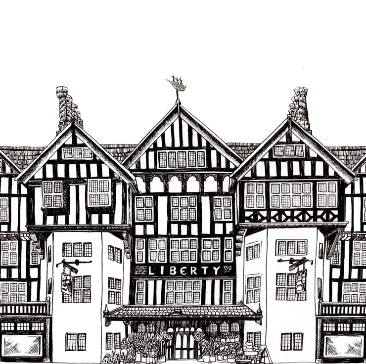 Illustration has always been a passion of mine and architecture is a fascinating subject matter for me. There are always interesting textures and shapes to draw which allows for a lot of detail and line work against more striking structures and shapes. The Liberty of London building is such an iconic and beautiful building to draw, and is one of my favourite shops to visit in London.