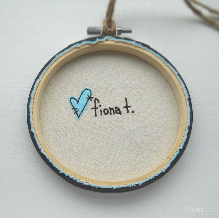 the hoop is backed with cotton calico, and there’s a coordinating heart and text on the reverse.