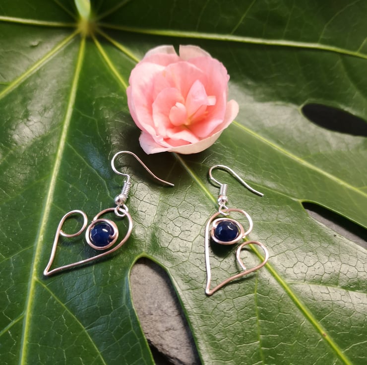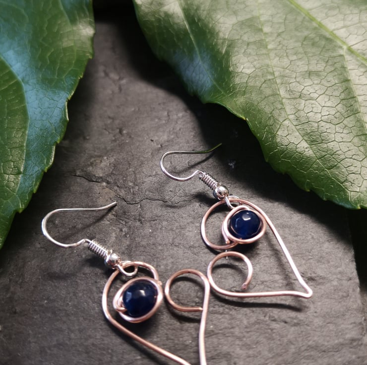 Handcrafted Wirework earrings with 6mm blue gemstones. I have used rose gold plated copper wire. The earrings have been created using wire looping, wrapping and hammering techniques.