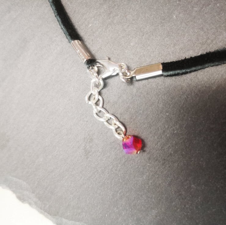 Once this fun jigsaw piece is set, a silver plated jump ring is attached through the centre with a black faux suede chain. The length is 18 inches, plus and inch extender, finished off beautifully with a Swarovski crystal dropper.