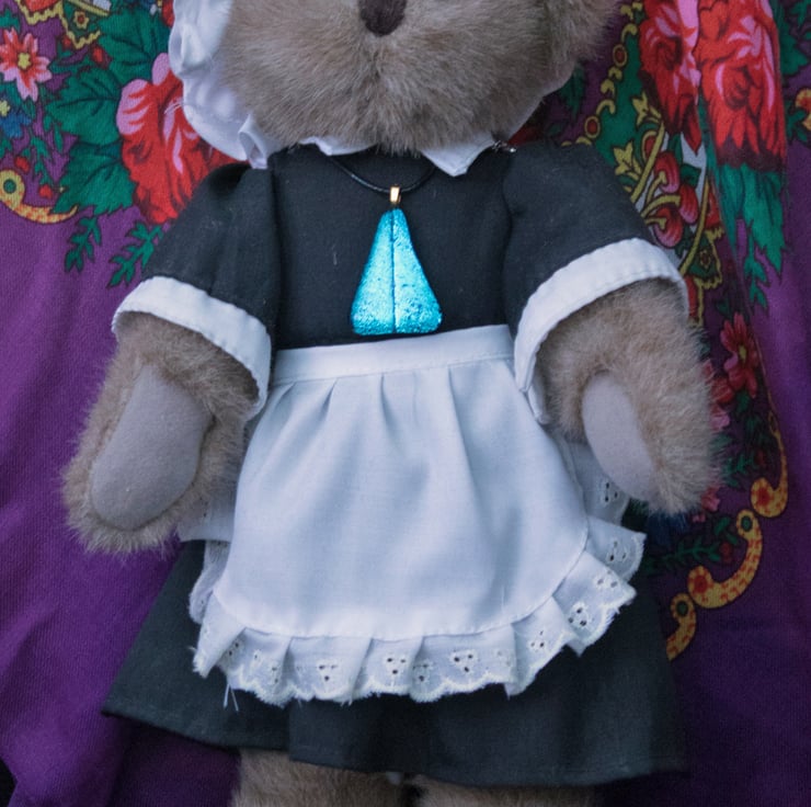 This was originally going to be one of a batch of Christmas Tree decorations. One of our friends saw them and said 'I'd wear that!'