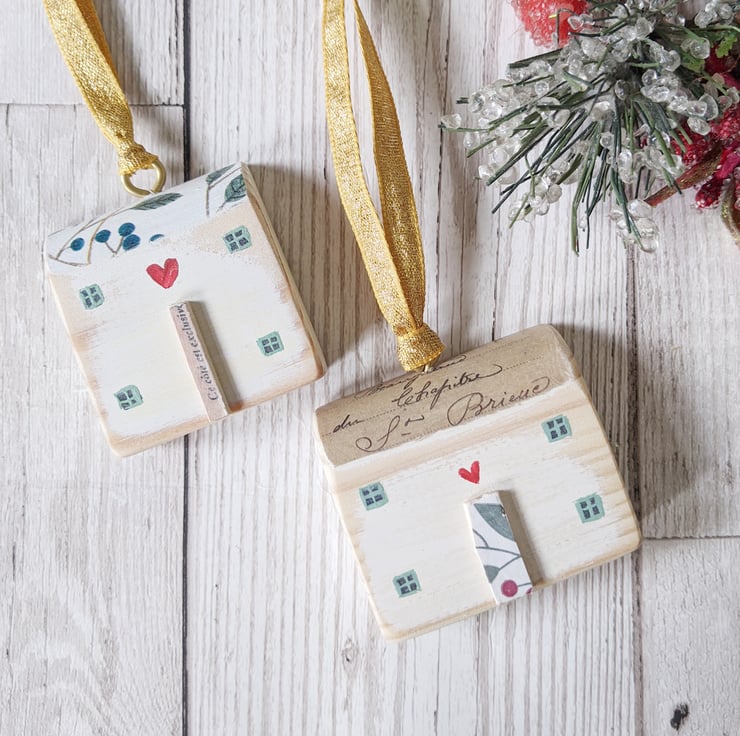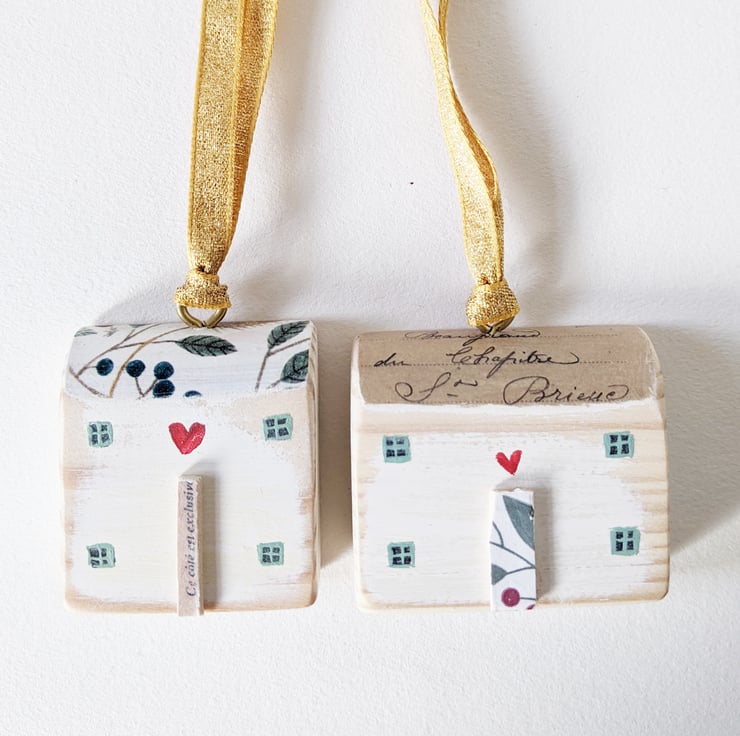 I have chosen two houses that compliment each other for this little set. Hang them together or give one as a gift!
