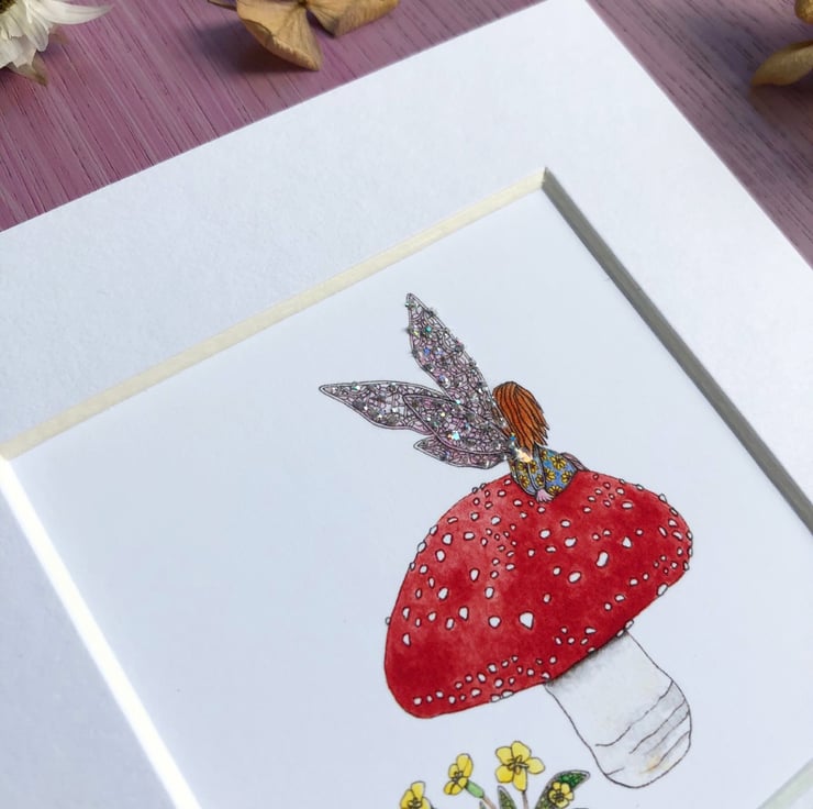 An ice white mounted print of my original artwork, 'Woodland Fairy'.