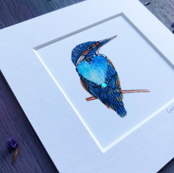 An ice white mounted print of my original artwork, 'Sapphire'.