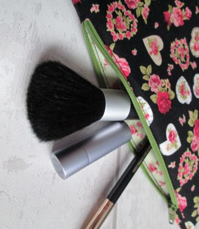 A pretty and practical zip top storage bag in a lovely floral print on black. Lined with a coordinating floral stripe and lightly padded to protect the contents, this simple, flat storage bag is sure to come in handy.