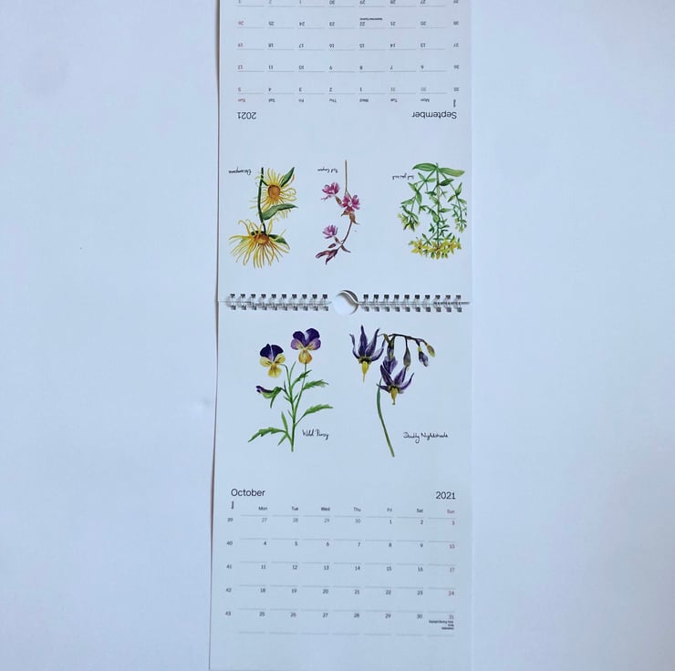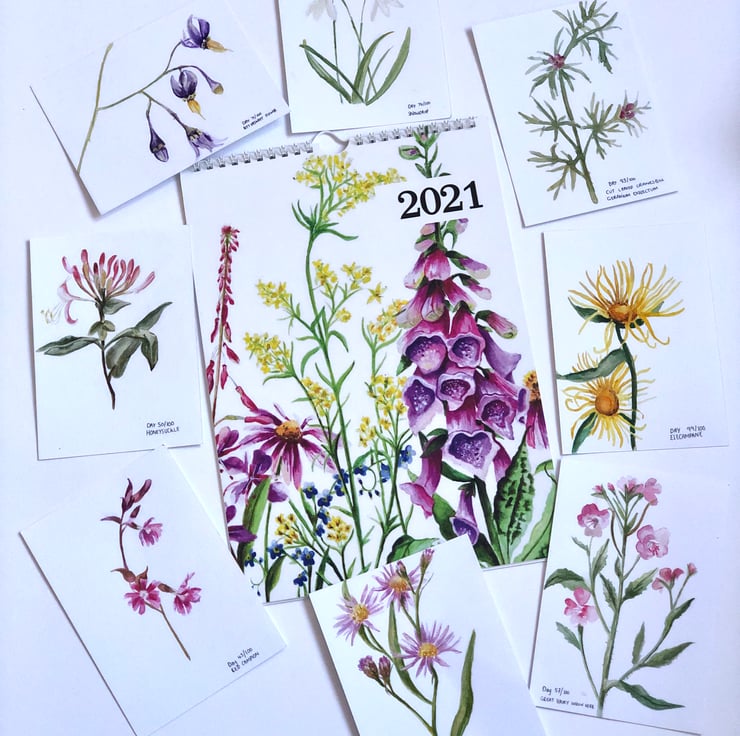 If you follow me on social media you will know I’ve spent the last year or so painting 100 wildflowers. Well now I’ve turned a couple of them into a 2021 wall calendar so you can enjoy them!