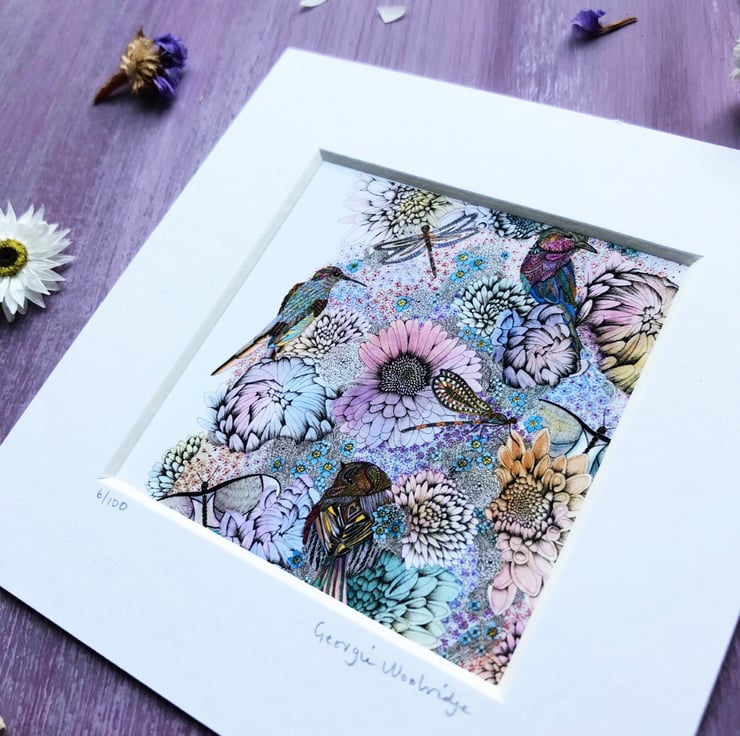 An ice white mounted print of my original artwork, 'Secret Garden'.