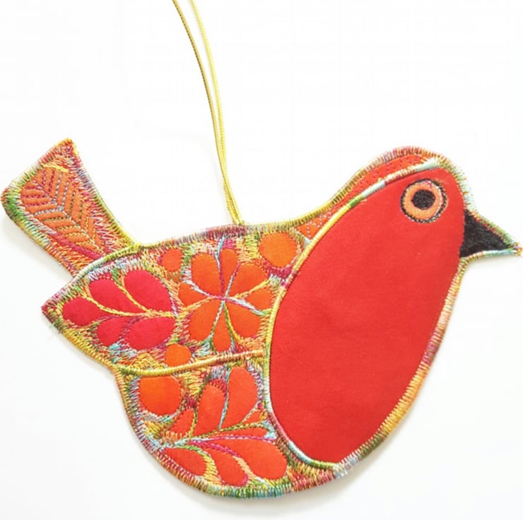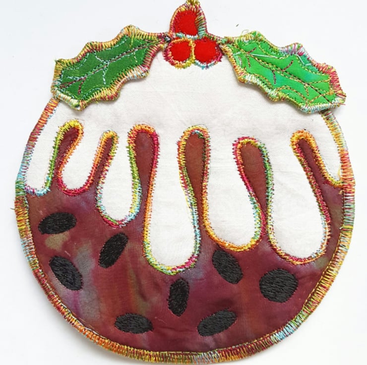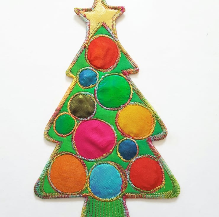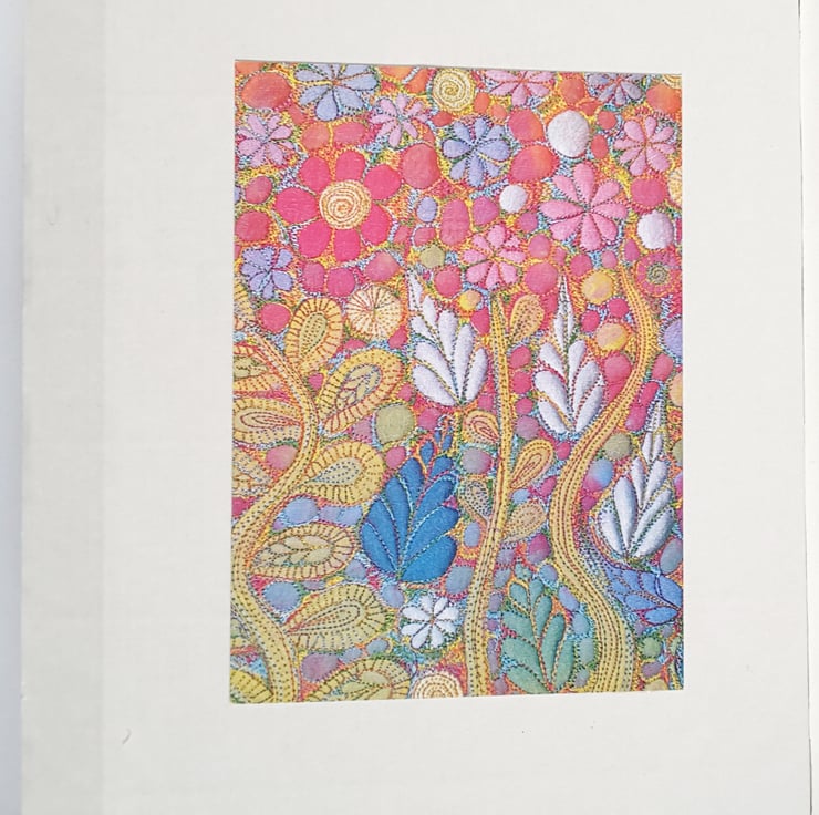 Made from layers of fabric including hand dyed Egyptian cotton and silk fabrics using the free machine embroidery style of sewing