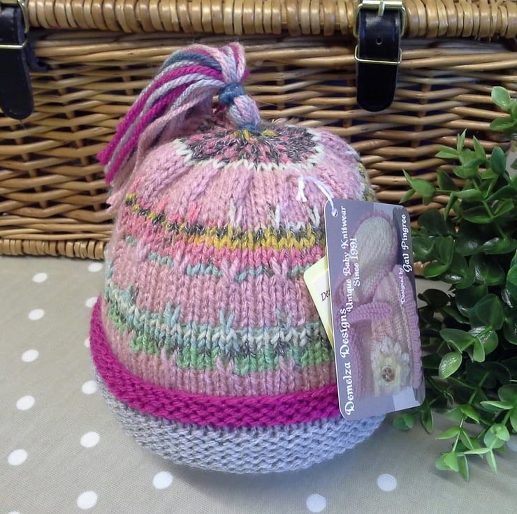 A lovely cosy warm hat designed and hand crafted using a mix of quality British manufactured yarns containing 20% Marino wool. The item is machine washable at low temperature settings.