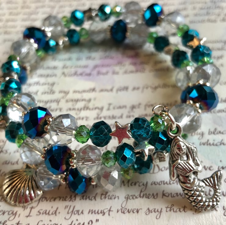 I have added a beautiful mermaid charm and a sea shell charm to each end of the bracelet.