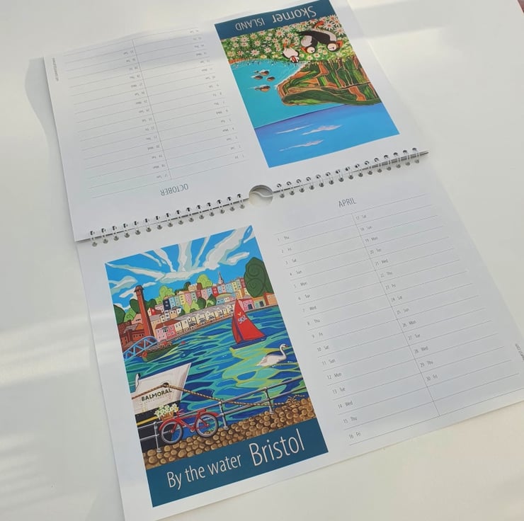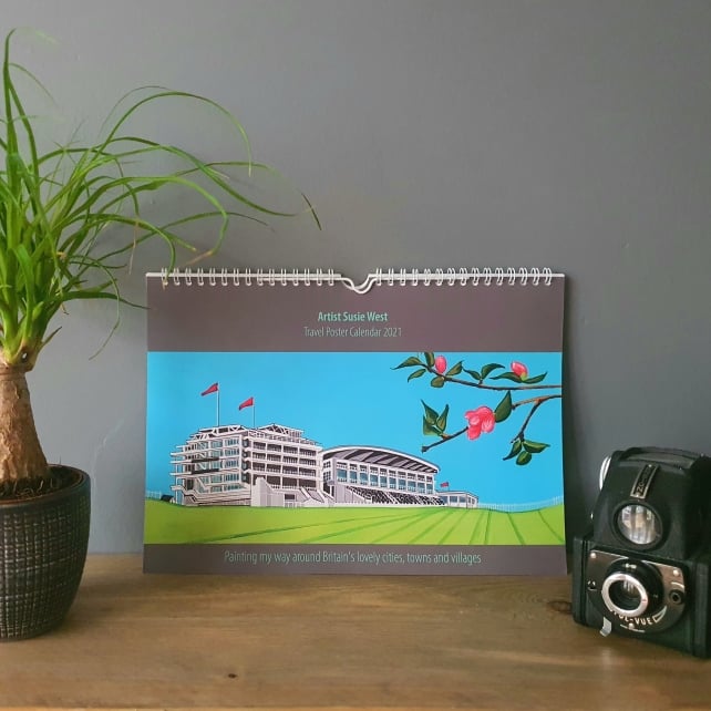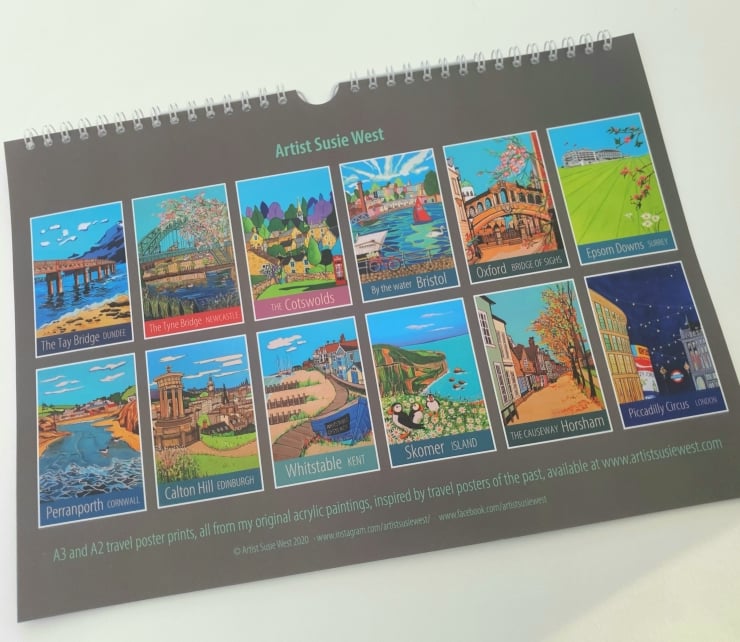 Our first ever calendar is now available, featuring 12 of my travel posters of Britain's lovely cities, towns and villages. With 133 posters in the range so far, it's been difficult to choose what to include, but we hope you'll love these places as much as we do - Dundee, Newcastle, The Cotswolds, Bristol, Oxford, Epsom Downs, Perranporth, Edinburgh, Whitstable, Skomer, Horsham and London!