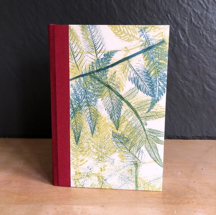 The cover design of this pocket sized notebook has been created by using leaves, grasses and fern fronds from my garden.