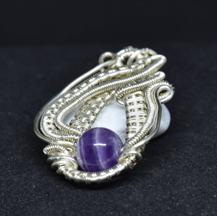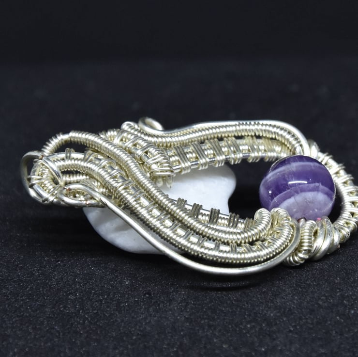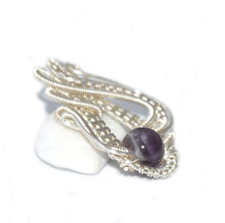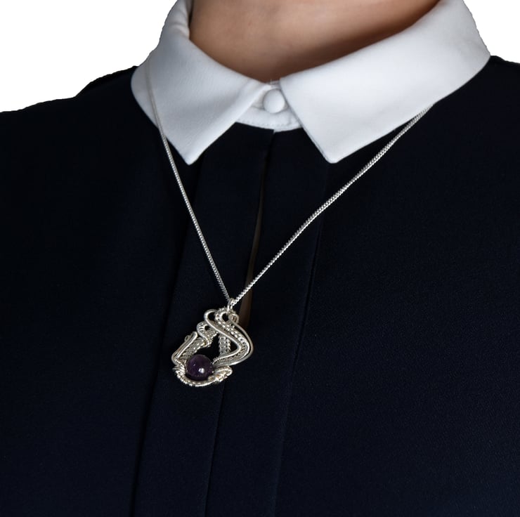This pendant is hand made from tarnish resistant silver plated copper wire.