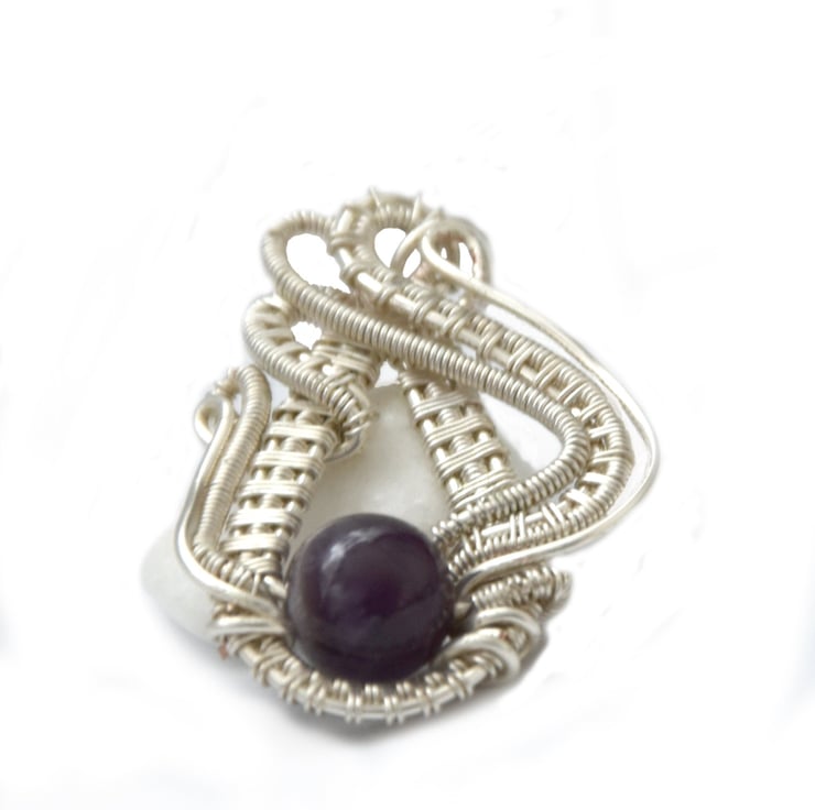 The stone is an amethyst bead in hues of purple and white.