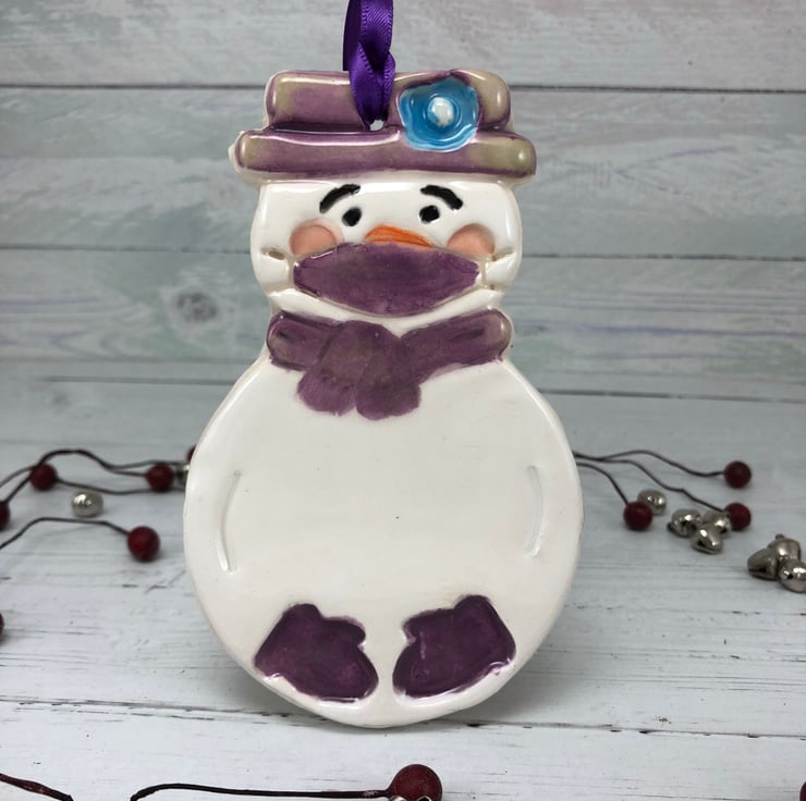 A mask wearing snowlady. A fun way to remember Christmas 2020