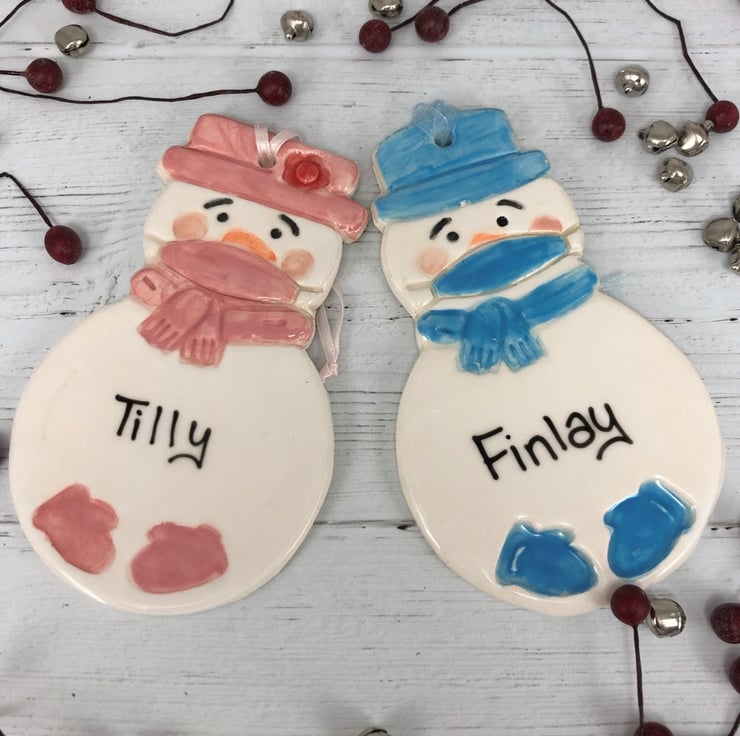 They come with a ribbon hanger and can have a name added with ceramic pen at no extra cost. Please contact me at time of order if you want the item personalised.