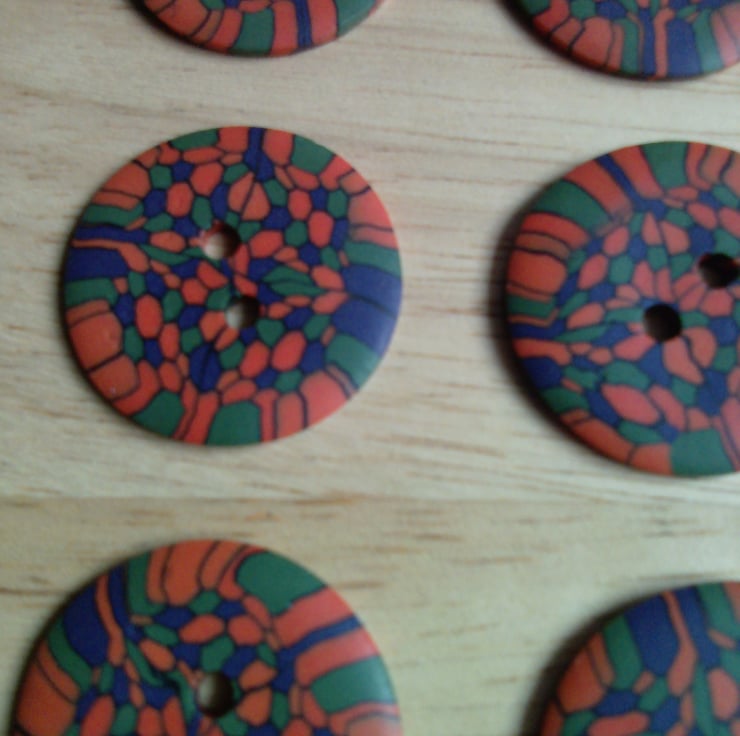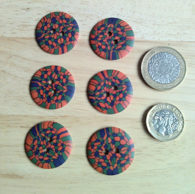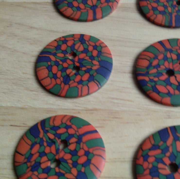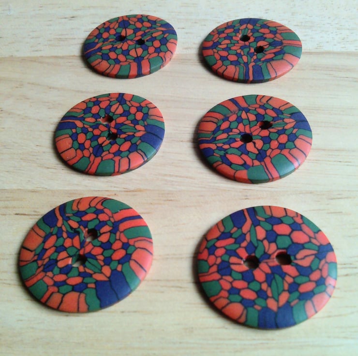 Set of 6 Medium size buttons. Buttons are handmade by me from polymer Fimo clay.