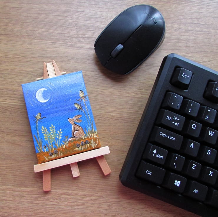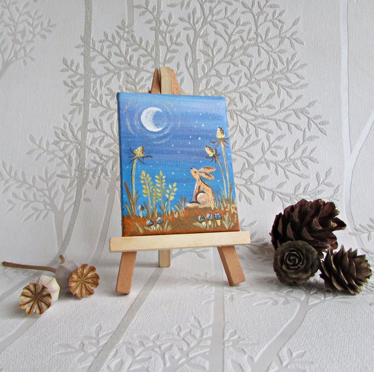 Small Acrylic Painting on canvas and with an easel. Ideal for sitting on a desk or shelf.