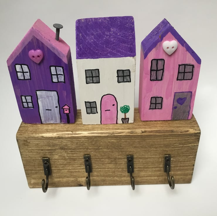 We have been making little wooden house Christmas decorations. They seemed too cute to only come out during the festive period and so the key hanger was born.