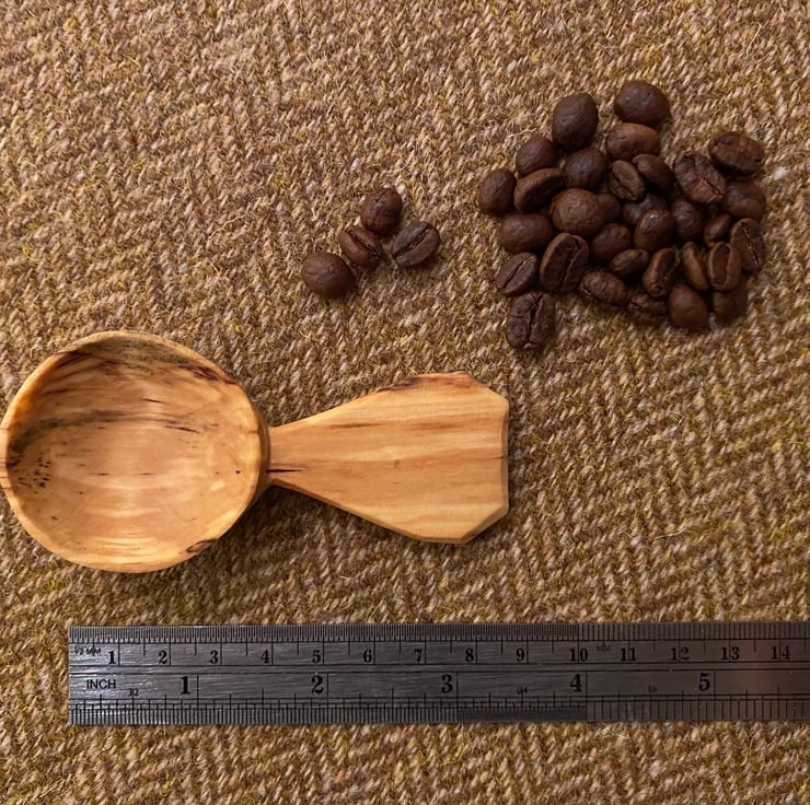 A beautifully spalted coffee or loose tea scoop. Made from Birch wood, and perfect for all your hot drink needs! If you happen to use an Aeropress, two heaped scoops from this is just about perfect but it can be used for all sorts and has an approx volume of a tablespoon.