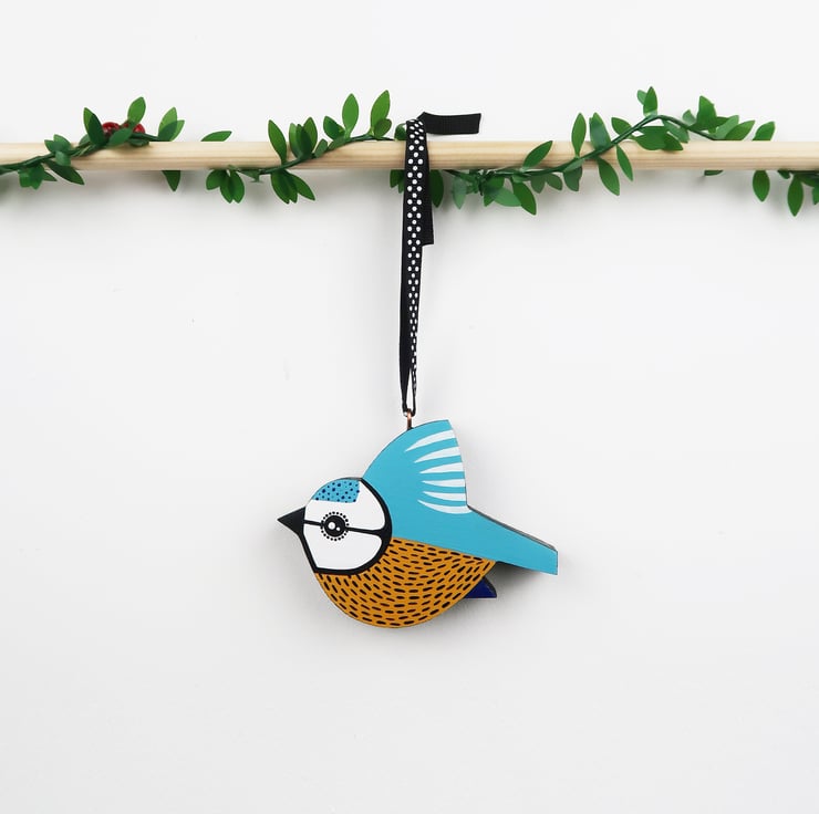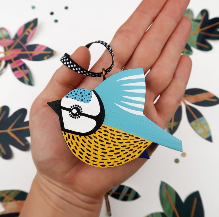 This tiny bird is fully made by hands with love and huge attention to details. Made of pine wood & hand painted with acrylic paints. Varnished - semi gloss finish. Back is plain black.