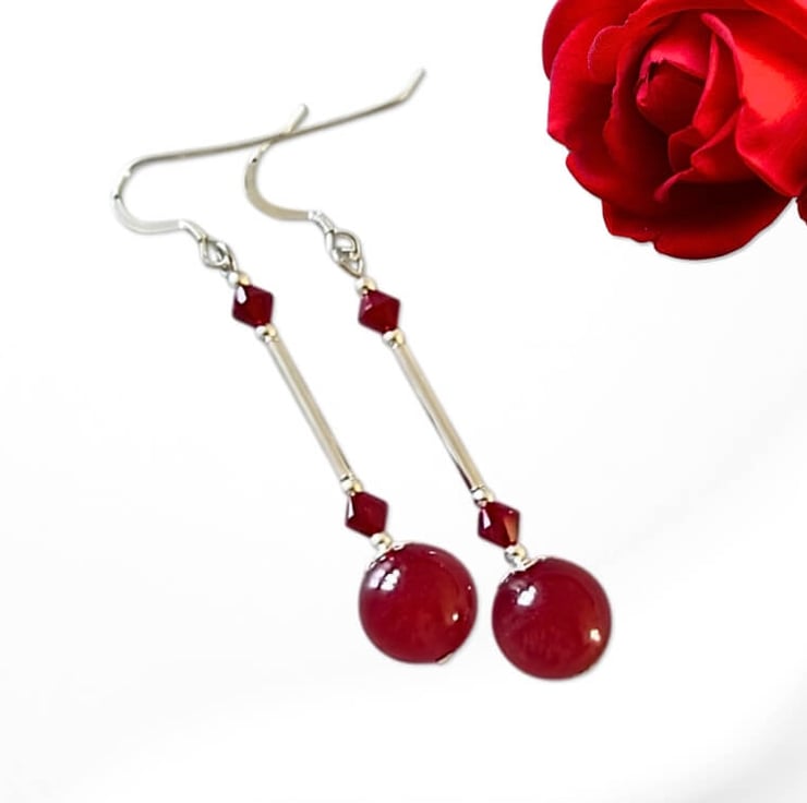 I chose these stunning red Jade beads for these handmade earrings as they can be worn at any time of the year, but especially at Christmas. Maybe also a Valentine's Day gift for your loved one?